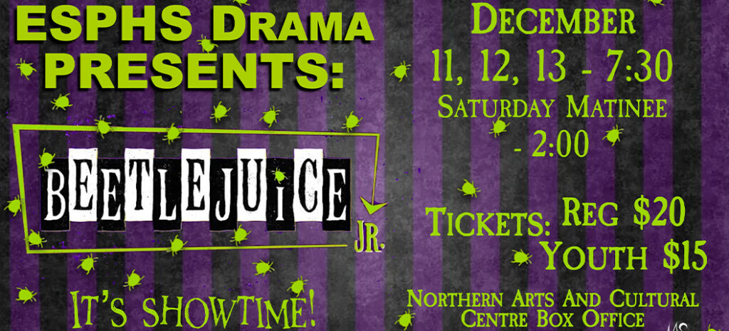 St. Pat’s Drama brings ghost-with-the-most to the stage in Beetlejuice JR., the frightfully funny musical based on the beloved motion picture turned Broadway phenomenon. Lydia Deetz is a strange and unusual teenager, still grieving the loss of her mother and obsessed with the whole “being dead thing.” Lucky for Lydia, she and her father move to a new house haunted by a recently deceased couple and Beetlejuice, a delightful demon with a real zest for life. When Lydia calls on Beetlejuice to scare away anyone with a pulse, this double-crossing specter shows his true stripes, unleashing a (Nether)world of pandemonium.
