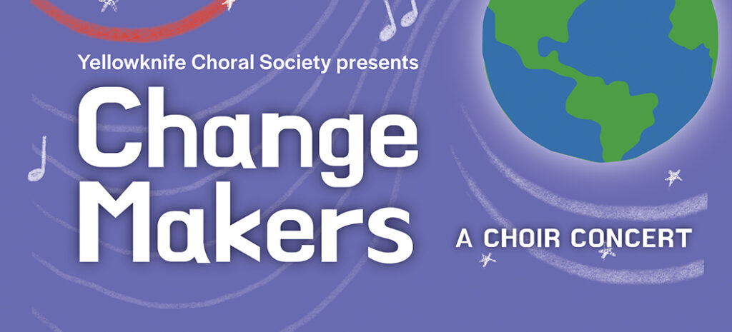 In an ever-changing world, our choirs sing about Change Makers: the people and things that shape change around us. The music is diverse, inspired by a world premiere performance of “A Pine Point Story,” written for us by Canadian choral composer Stuart Beatch. The song commemorates the poignant and powerful legacy of Everett Klippert and his place in Northern history. The Yellowknife Choral Society celebrates this and other powerful change makers in performances by Fireweed Children’s Chorus, Aurora Chorealis, and special guests: the Yellowknife Youth Choir and SkyFire Taiko.