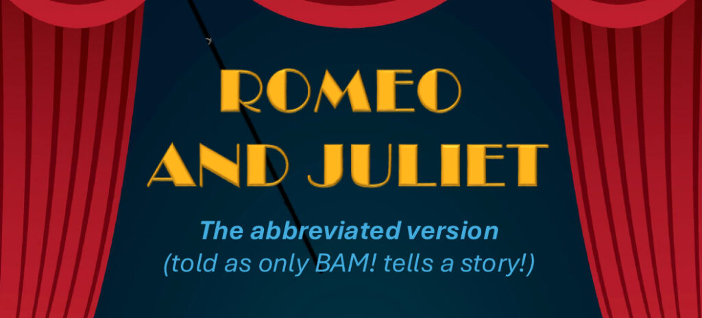 Experience a revolutionary fusion of art forms as BAM! presents a fun, one-act reimagining of Shakespeare’s Romeo and Juliet. Actor Jeremy Findlay skillfully inhabits every role in Jen Walden’s fast-paced, original script. The BAM! Community Orchestra performs Schubert’s Unfinished Symphony and selections from Prokofiev’s Romeo and Juliet Orchestral Suites.