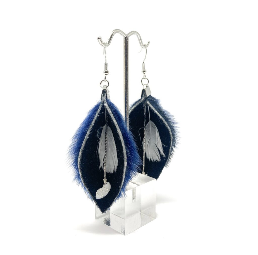 “My Métis ancestry influences my life in various ways, as a fisherman and an artist. I have been a commercial fisherman for over 10 years, and harvesting the fish myself allows me to make jewelry from the ear-bones (otoliths) of the fish. Being raised to enjoy traditional activities such as hunting, fishing, riding horses, and gathering produce from the land has allowed me to embrace my creative side in other ways with “stained wood” art as well.